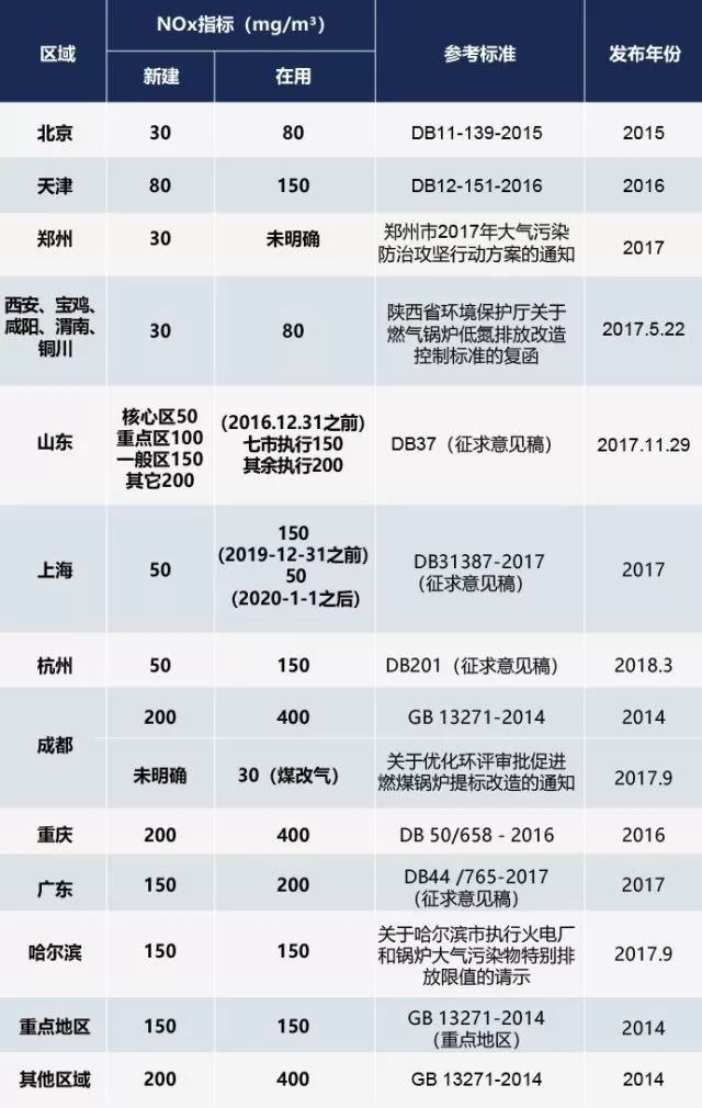 相關(guān)欄目:企業(yè)新聞 | 行業(yè)資訊 | 常見(jiàn)問(wèn)題各地燃?xì)忮仩t氮氧化物排放量標(biāo)準(zhǔn)